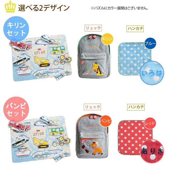 名前入り どうぶつパズルとリュックとハンカチのセット おうち時間