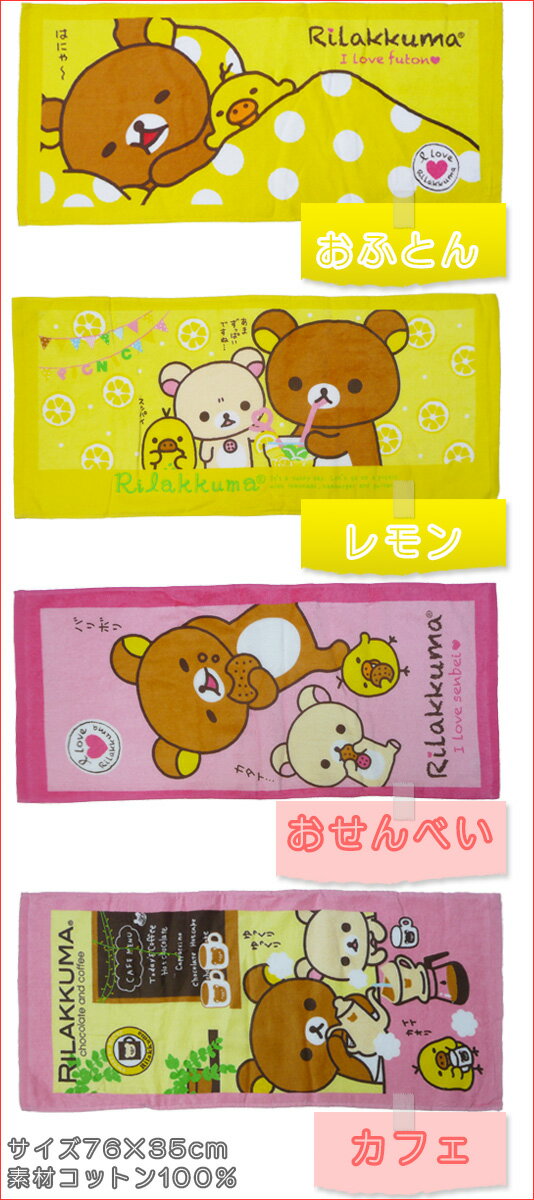【4タイプ】リラックマシャーリングフェイスタオル♪76×35cmの一番よく使うサイズ♪スポーツにもどうぞ♪【コットン・綿100%・りらっくま・サンエックス】[春物][夏物][秋物][冬物]