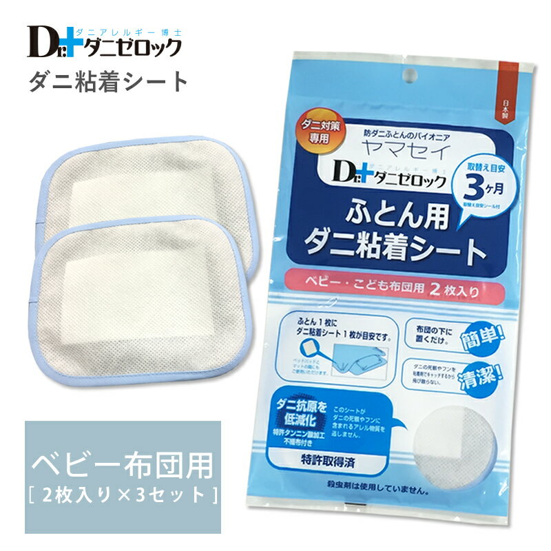 【6月はずっとポイント5倍!】 ダニ粘着シート ベビー・子供布団用 【2枚入り】 15×12cm ダニ対策 ダニ捕り ダニ取りシート ダニシート【3セット】 新生活